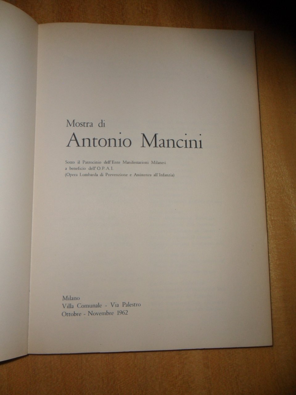 ANTONIO MANCINI, catalogo mostra delle opere - villa comunale di Milano 1962