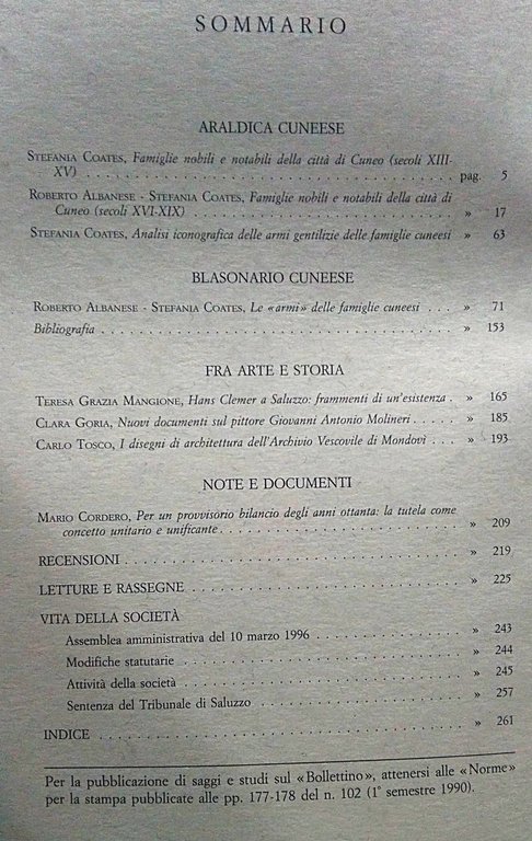 ARALDICA CUNEESE. Bollettino della Società per gli Studi Storici, Archeologici ed Artistici della Provincia di Cuneo. N. 114, 1° semestre 1996.