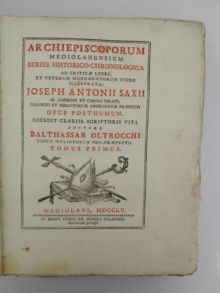 Archiepiscoporum Mediolanensium series historico-chronologica ad criticæ leges et veterum monumentorum fidem illustrata: Joseph Antonii Saxii | Livres anciens et modernes | Sassi, Giuseppe Antonio