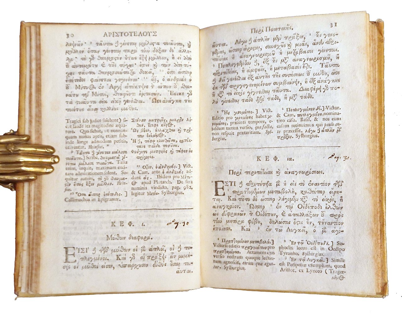 Aristotelous Peri poetikes. Aristotelis De poetica liber. Ex versione Theodori Goulstoni perpetuis notis analyticis illustrata. Accedunt integrae notae. Frid. Sylburgii, & Dan. Heinsii, necnon selectae aliorum | Livres anciens et modernes | Aristoteles - Goulston, Theodore