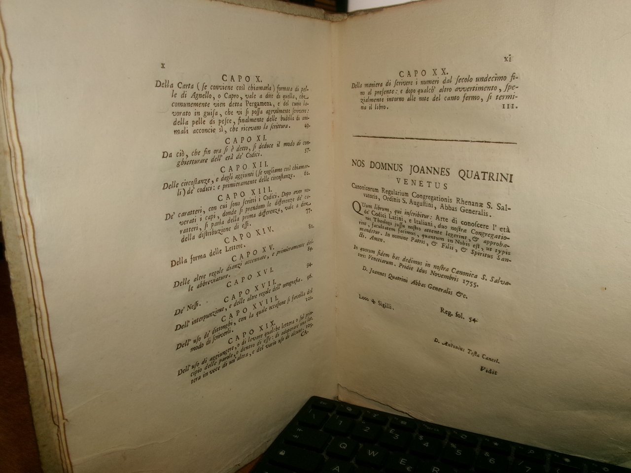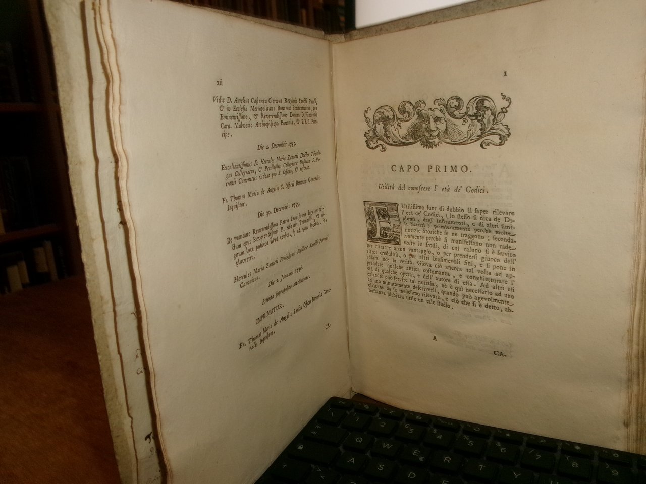 Arte di conoscere l' età de' codici latini e italiani. TROMBELLI, Giovanni 1756