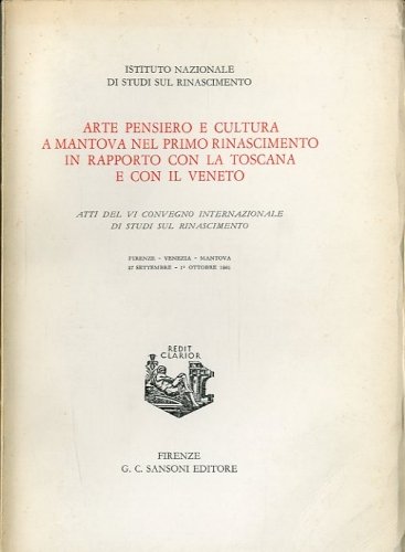 Arte pensiero e cultura a Mantova nel primo Rinascimento in rapporto con la Toscana e con il Veneto.