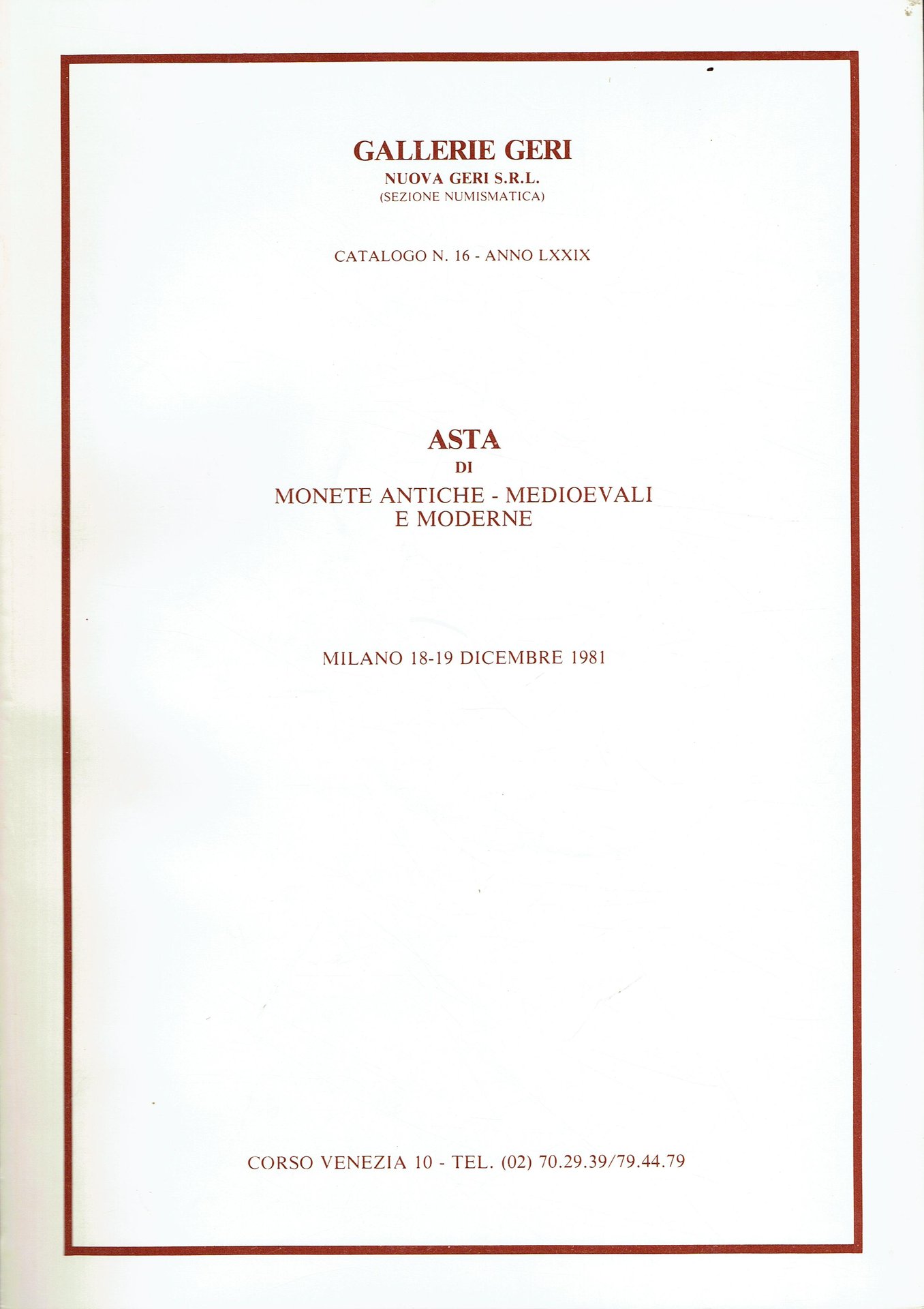 Asta di monete antiche, medioevali, moderne, estere, medaglie, pesi, cartamoneta, lotti
