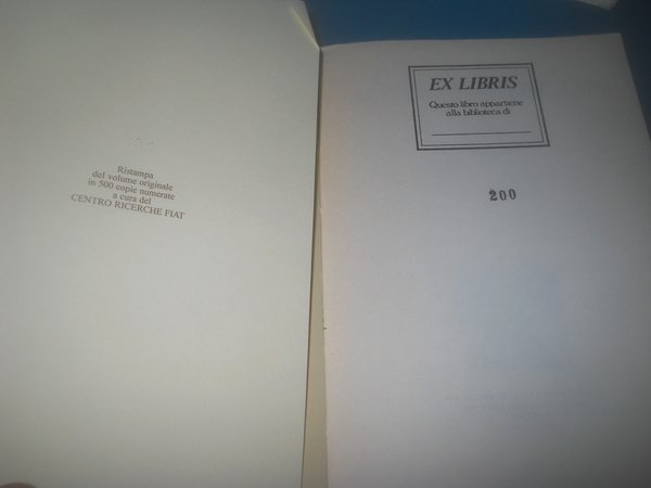 Edizioni Arktos - Carmagnola, 1995 - ristampa del volume originale in 500 copie numerate a cura del Gruppo Ricerche Fiat - ns, copia n. 200 //2 volumi con copertina morbida e sovracopertina + custodia, formato cm. 14 x 20 - eccellente stato generale