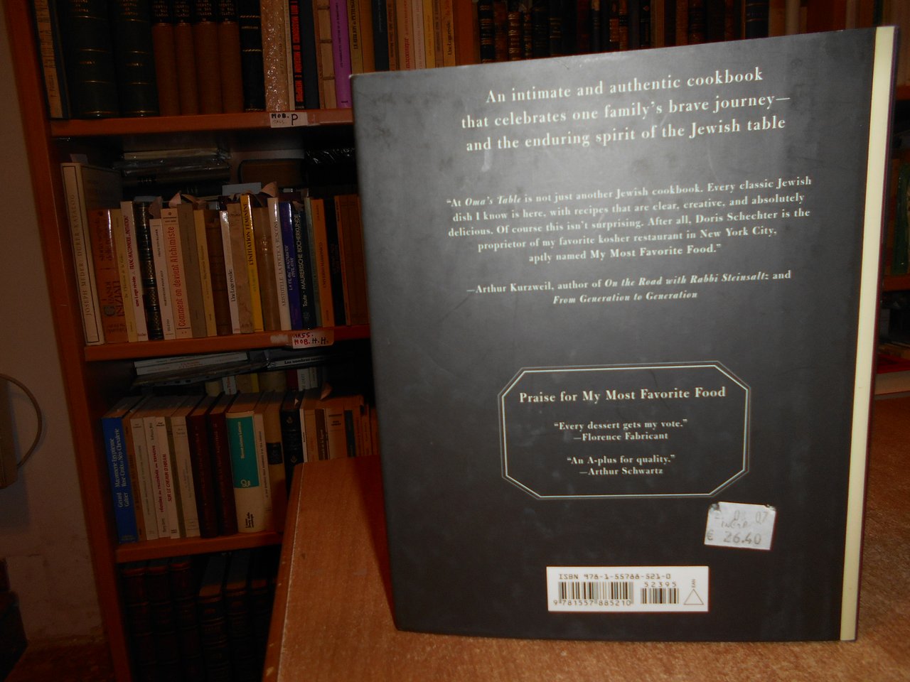 DORIS SCHECHTER. New York, Penguin Group, 2007. AT OMA'S TABLE. More Than 100 Recipes and Remembrances fro a Jewish Family's Kitchen. In-8°, cartonato edit. con titolo in oro al dorso, sovracopertina. ix, 254 pp. con alcune illustrazioni n.t. Ricettario gastronomico con testo in inglese. Come nuovo. Uff. stanzetta a sinistra 3 - 2 carc.