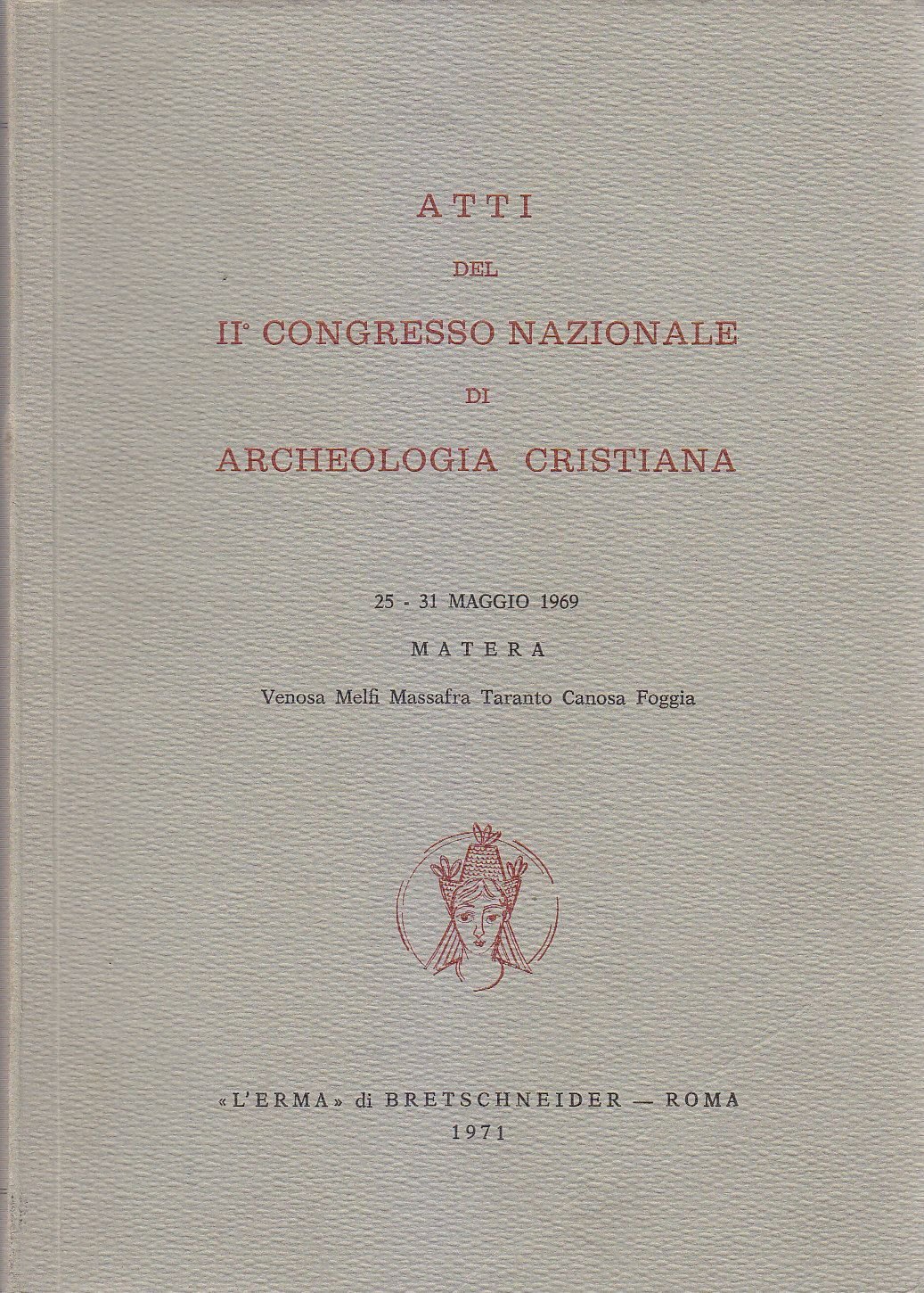 ATTI DEL II CONGRESSO NAZIONALE DI ARCHEOLOGIA CRISTIANA Edizione L’Erma di Bretschneider 1971. 506 Pagine, numerose foto in b/n fuori testo. Copertina editoriale in brossura. Dimensioni: 17,5 x 25 cm. Stato di conservazione: molto buono (pagine normalmente ingiallite, alcune sottolineature a matita)
