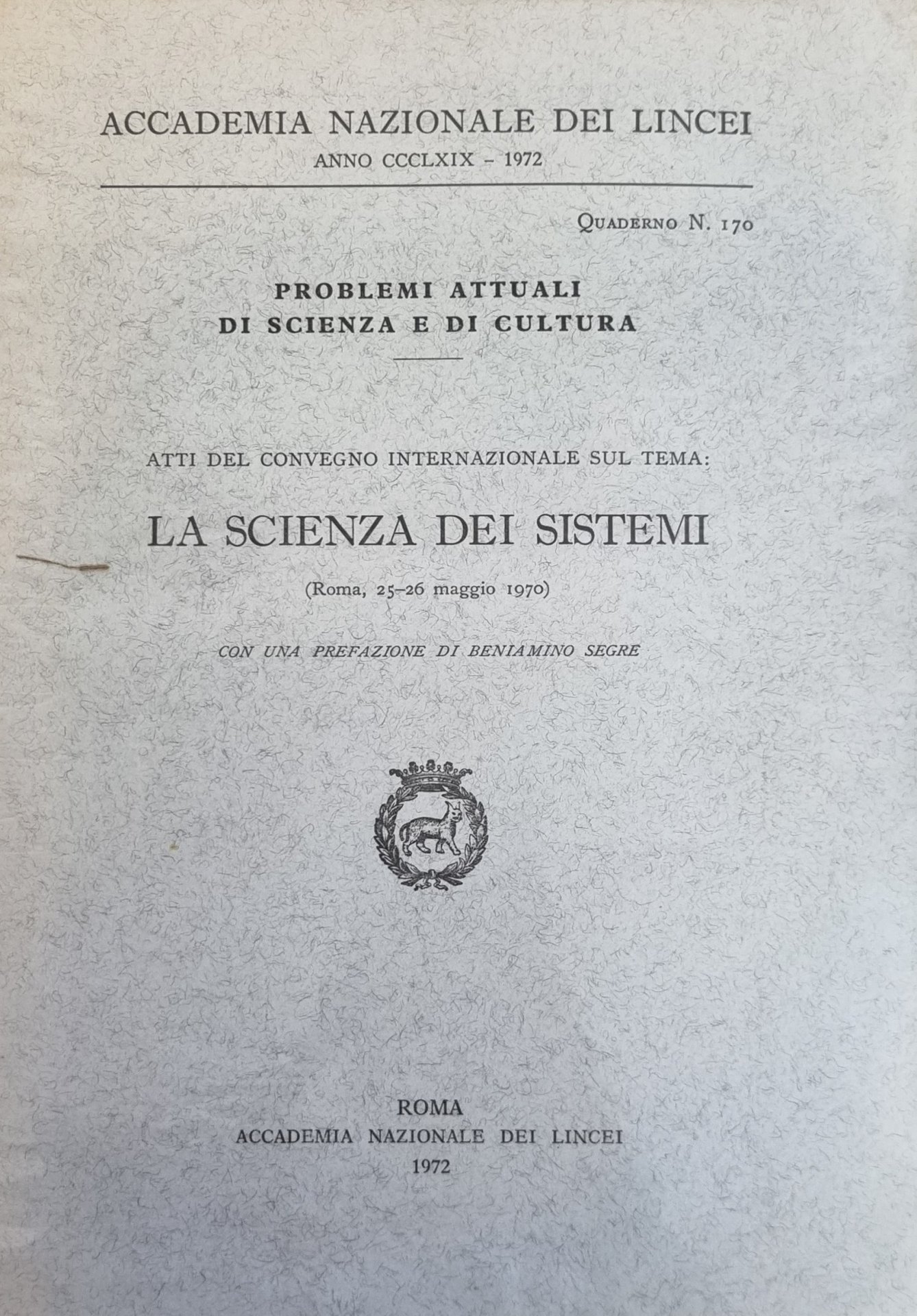 Roma 25-26 Maggio 1970. tavv. estraibili. in ottavo leg. bross. pp. 150 Buono (Good) Buon es. ma con segni del tempo.