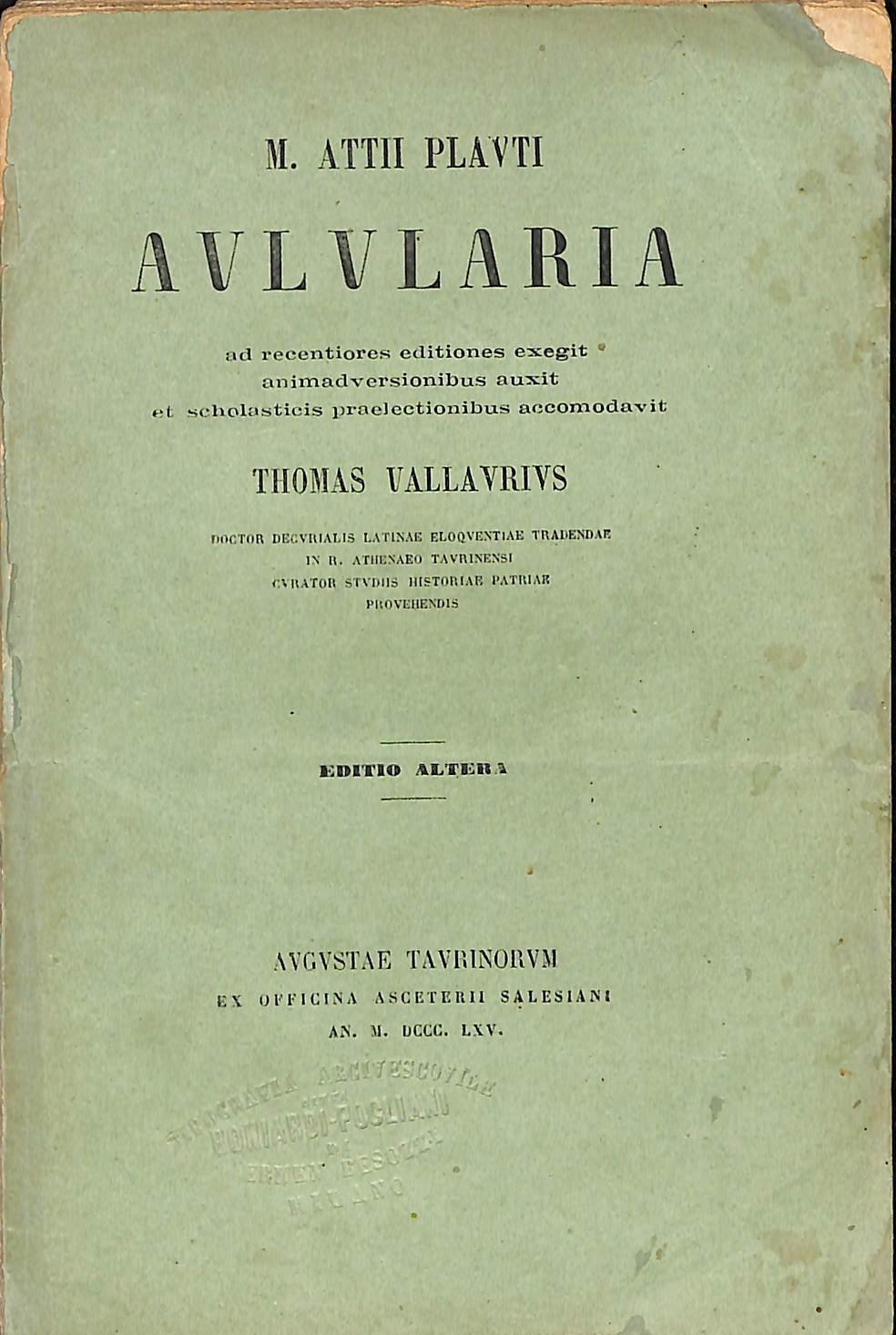 XX, 110 p. ; 18 cm. Testo e note in latino. Manca il dorso. 870 - Ba Buono (Good)