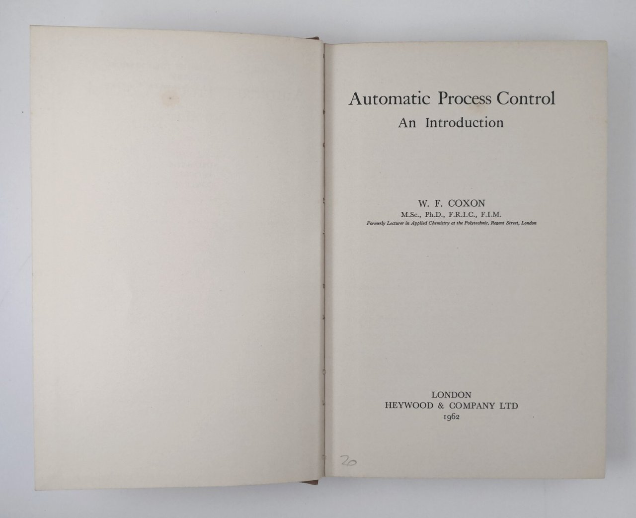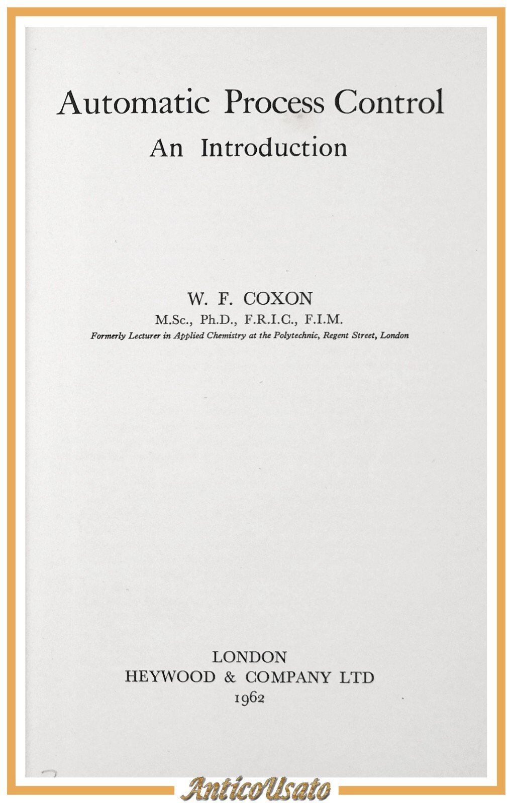 AUTOMATIC PROCESS CONTROL AN INTRODUCTION di W Coxon 1962 Heywood Company Libro