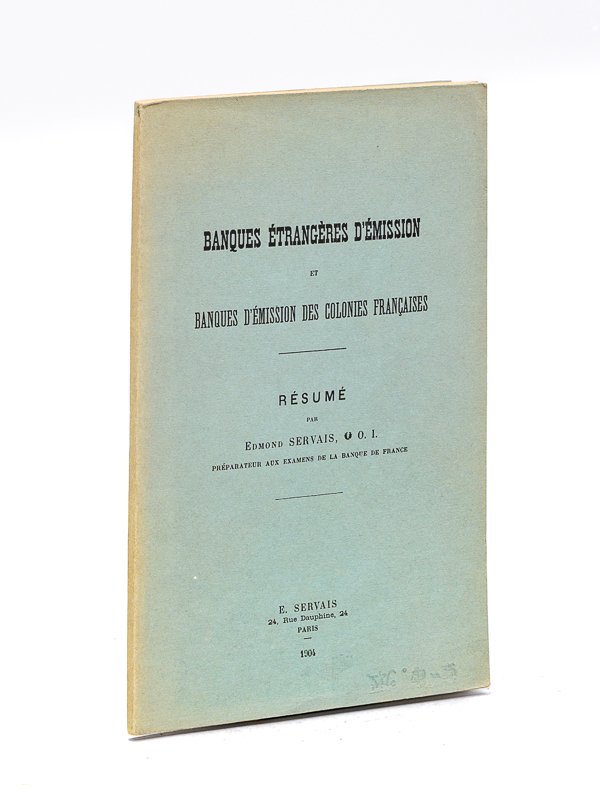 Résumé par Edmond Servais, Préparateur des Examens de la Banque de France, 1 vol. in-8 br., E. Servais, Paris, 1904, 105 pp. Bel exemplaire en très bel état. Peu commun.