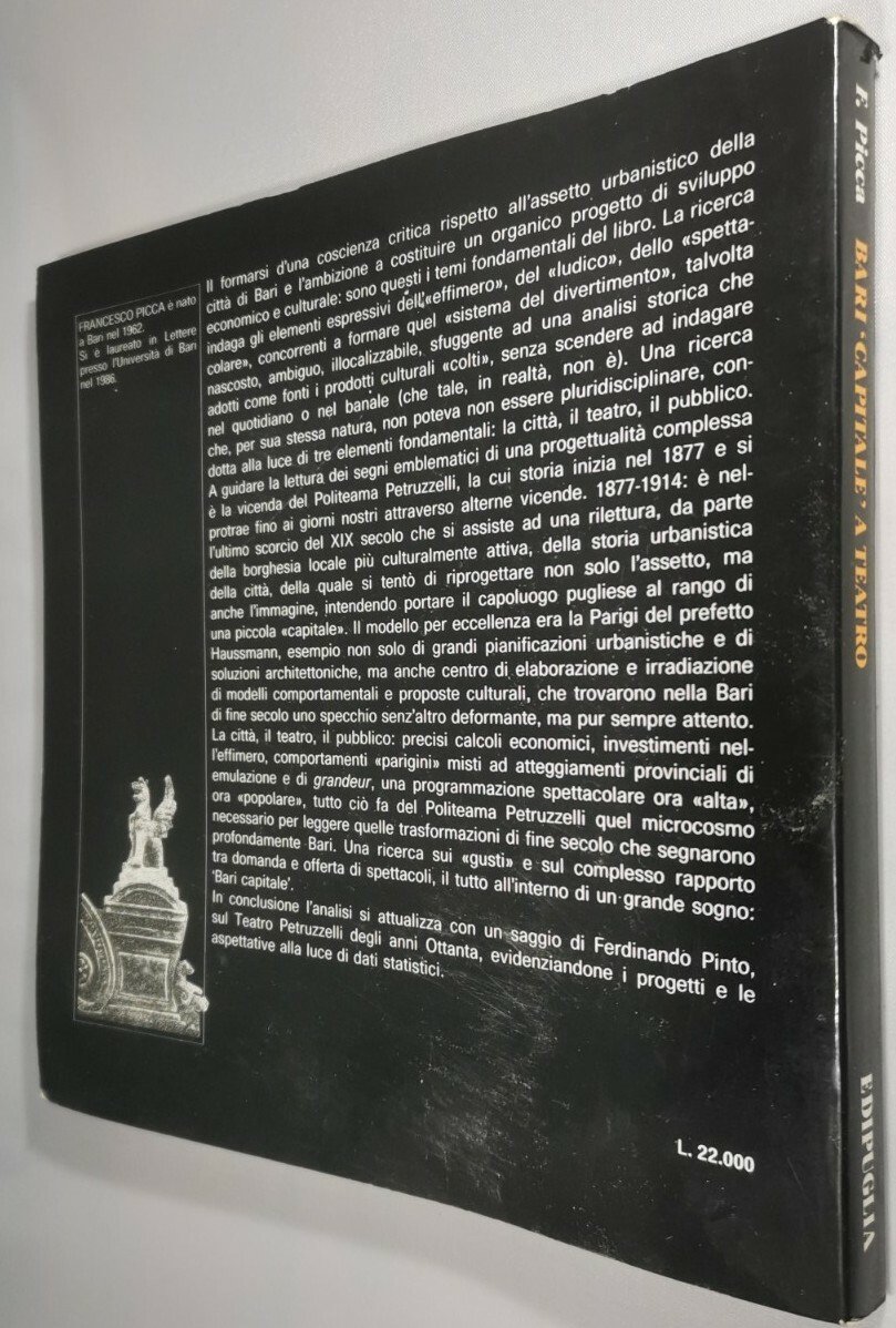 BARI CAPITALE A TEATRO il Politeama Petruzzelli 1877 1914 di Francesco Picca Edipuglia editore, 1987.