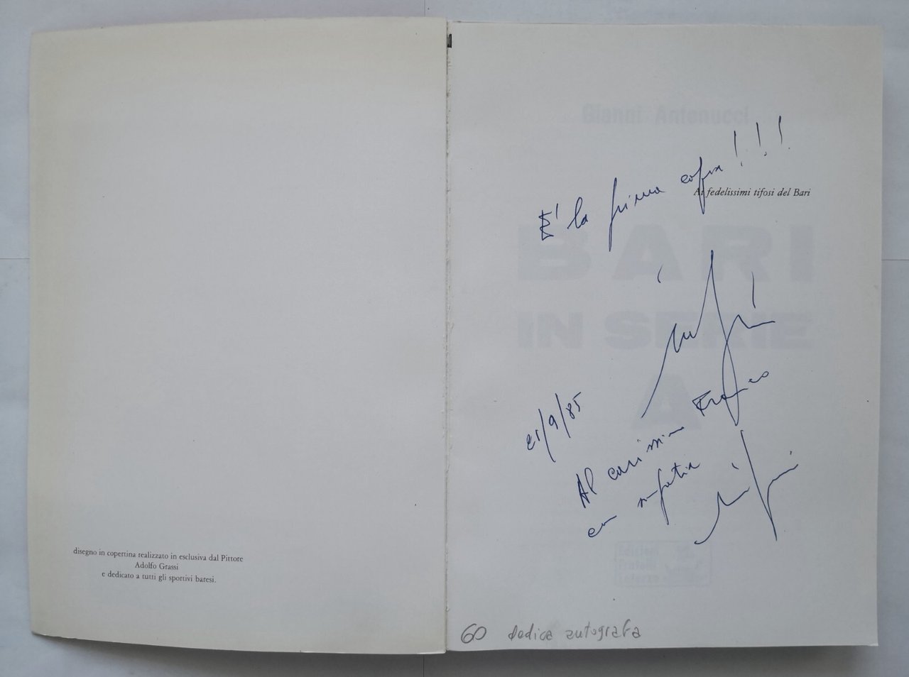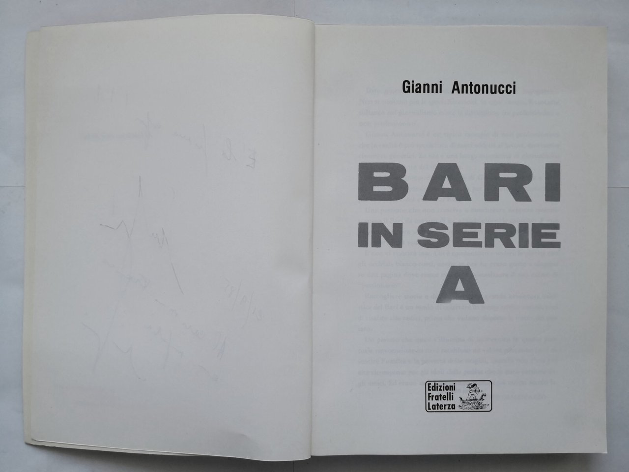 BARI IN SERIE A di Gianni Antonucci 1985 Laterza Libro Dedica Autografa Autore