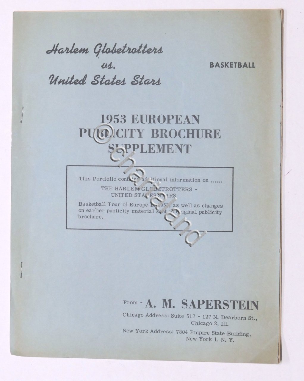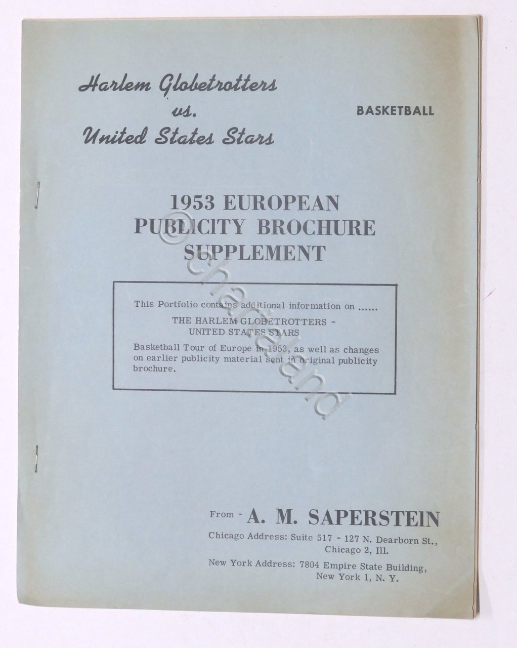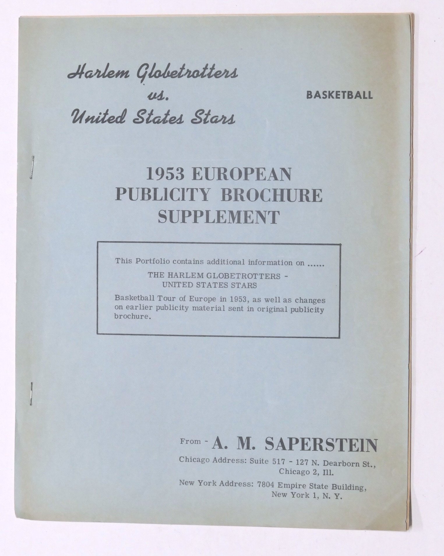 Basket Harlem Globetrotters - 1953 European Publicity Brochure Supplement