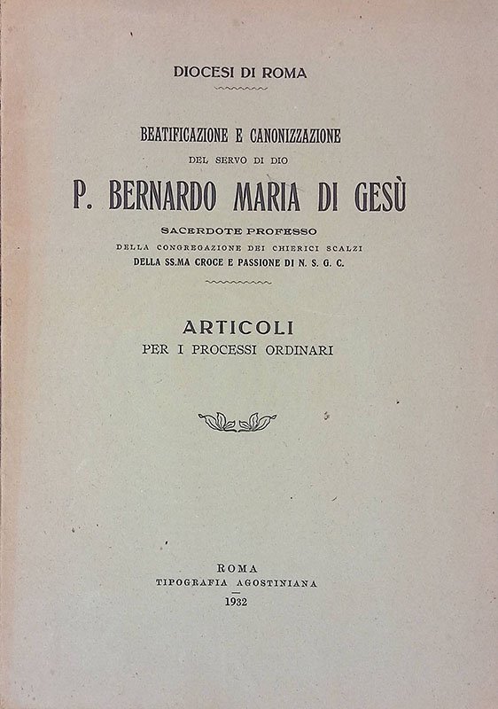 Beatificazione e canonizzazione del servo di Dio P. Bernardo Maria di Gesù, sacerdote professo della Congregazione dei Chierici Scalzi della SS.ma Croce e passione di N. S. G. C. - Articoli per i processi ordinari