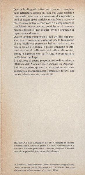 Bibliografia della deportazione nei campi nazisti. A cura di Teo Ducci.