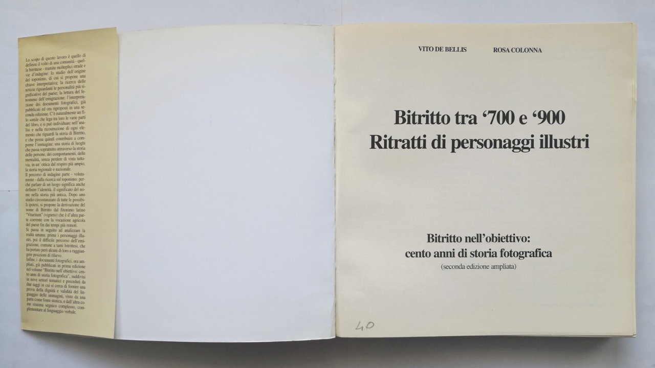 BITRITTO TRA '700 '900 RITRATTI DI PERSONAGGI ILLUSTRI di Vito De Bellis e Rosa Colonna. Bitritto nell'obiettivo: cento anni di storia fotografica.