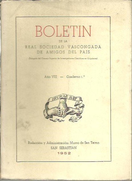 BOLETIN DE LA REAL SOCIEDAD VASCONGADA DE LOS AMIGOS DEL PAIS. AÑO VIII. CUADERNOS 1.