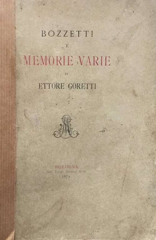 Cm. 18, br. edit., 111 pp. Lievi segni dell'uso alla cop. e qualche pp. macchiata ma buon esempl. 1879. 16 Buono (Good) Buono