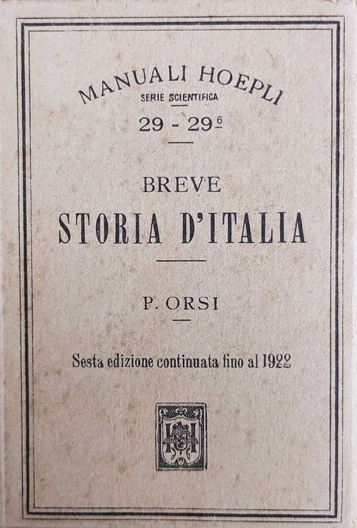 Sesta edizione continuata fino al 1922. in sedicesimo leg. bross. pp. (VIII), 298 Buono (Good) Buon es. con segni d'uso e del tempo.