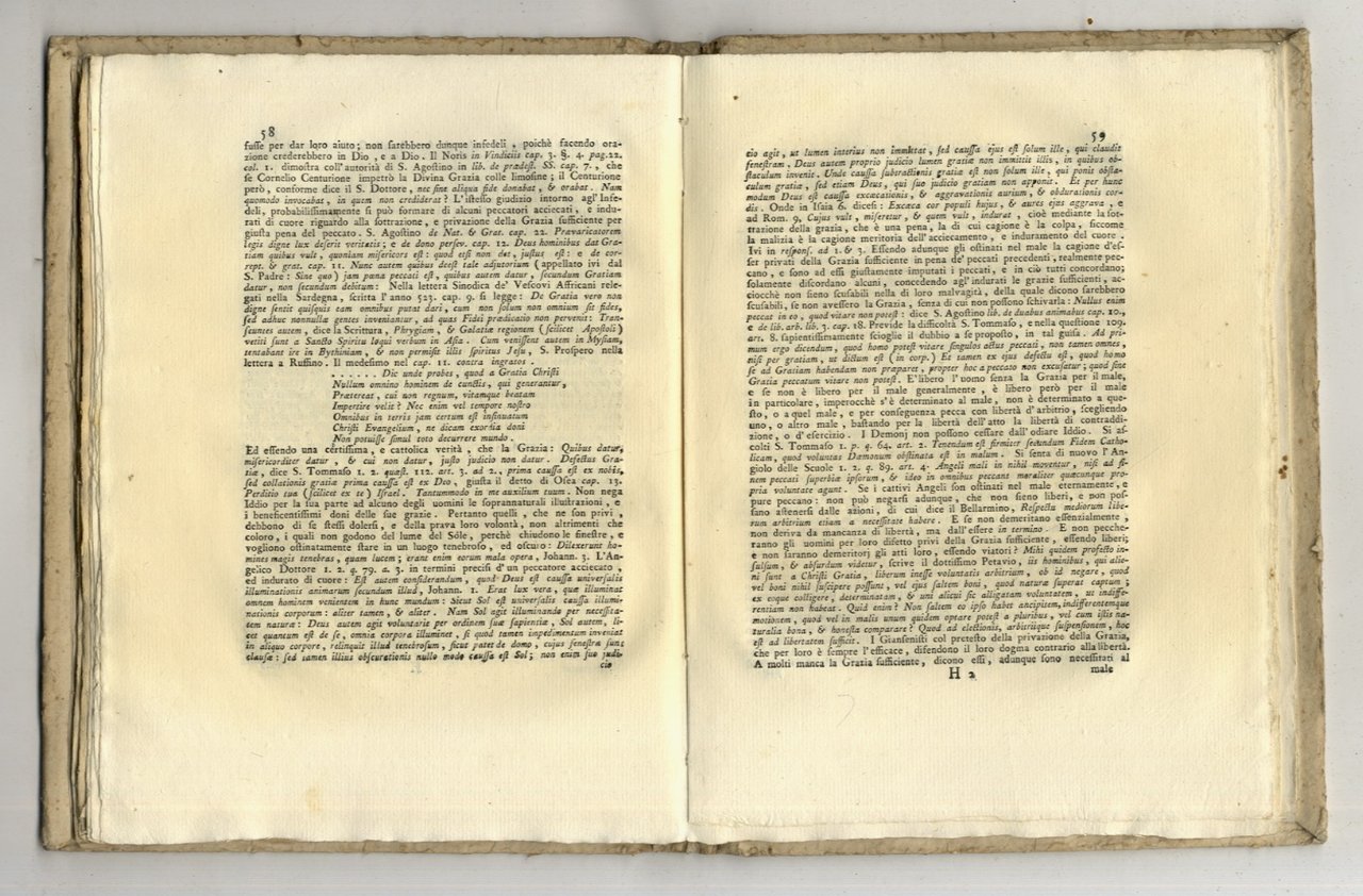 In Torino, nella Stamperia Reale, 1760, in-4, cartonatura rustica coeva, pp. [8], 98, [2]. Prima edizione. Melzi, Opere anonime e pseudonime, v. 1, p. 151 attribuisce l'opera ad Antonio Maria Martini arcivescovo di Firenze, ma l'opera fu composta da Francesco Incontri, predecessore di Martini nel ruolo di arcivescovo di Firenze e solo pubblicata dal Martini. Nota manoscritta coeva al verso della prima carta di guardia: "Donato dall'Arcivescovo di Firenze Incontri Autore del med[esim]o". Un piccolo segno di tarlo solo marginale a poche carte. Bell'esemplare.