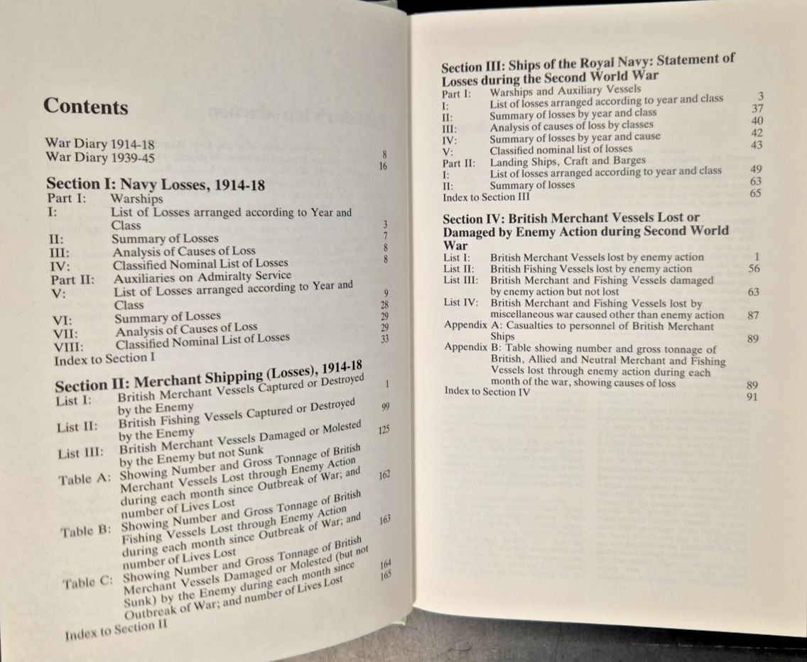 BRITISH VESSELS LOST AT SEA 1914 1918 and 1939 1945 reprints of four HMSO official pubblications.