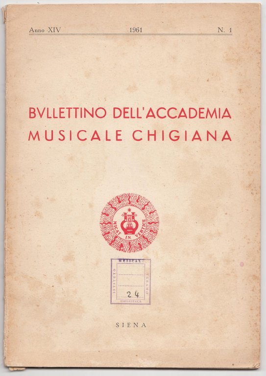 Bullettino Dell'accademia Musicale Chigiana Anno Xiv 1961 N. 1 Siena -L3882