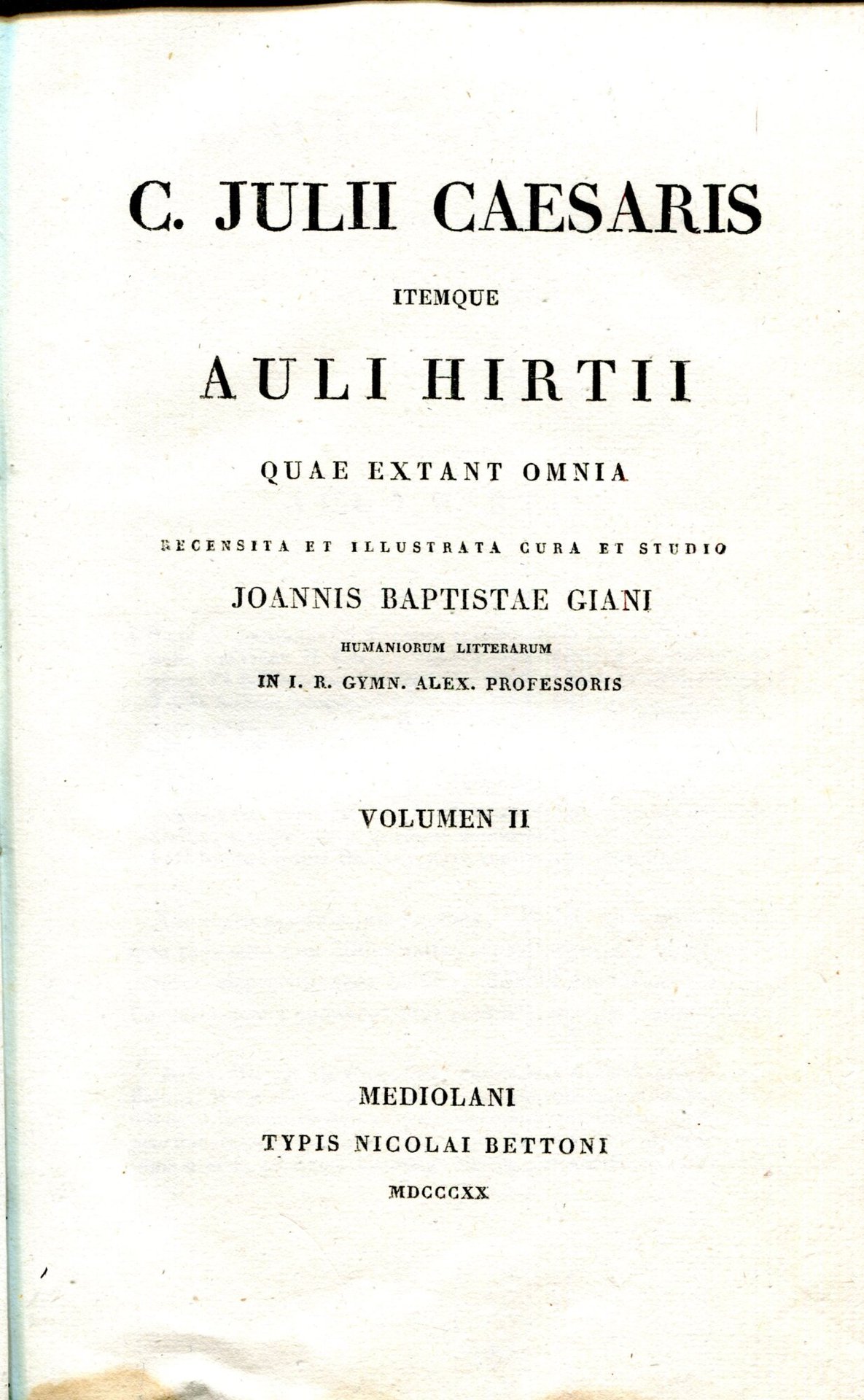 C. Julii Caesaris itemque Auli Hirtii Quae extant omnia recensita et illustrata cura et studio Joannis Baptistae Giani ... Volumen 2-3