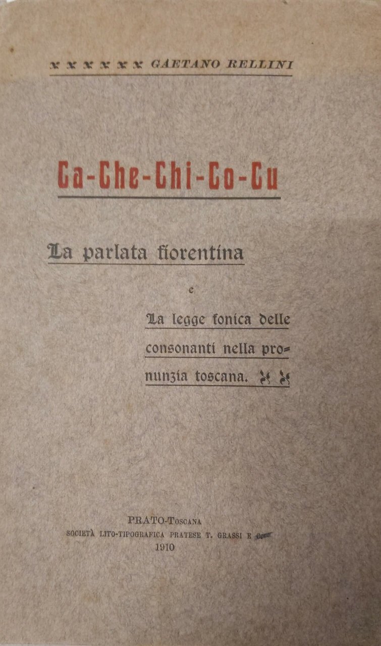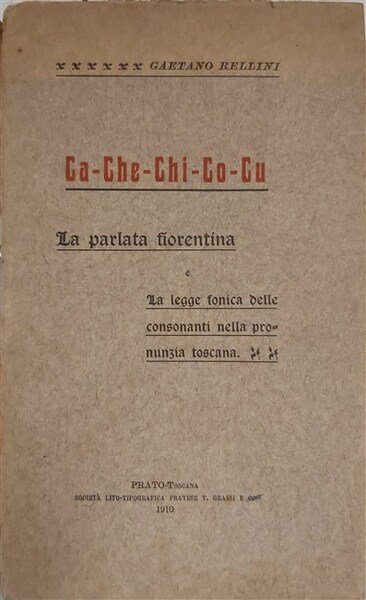 CA-CHE-CHI-CO-CU. della parlata fiorentina e della legge fonica delle consonanti nella pronunzia toscana. Conferenza.
