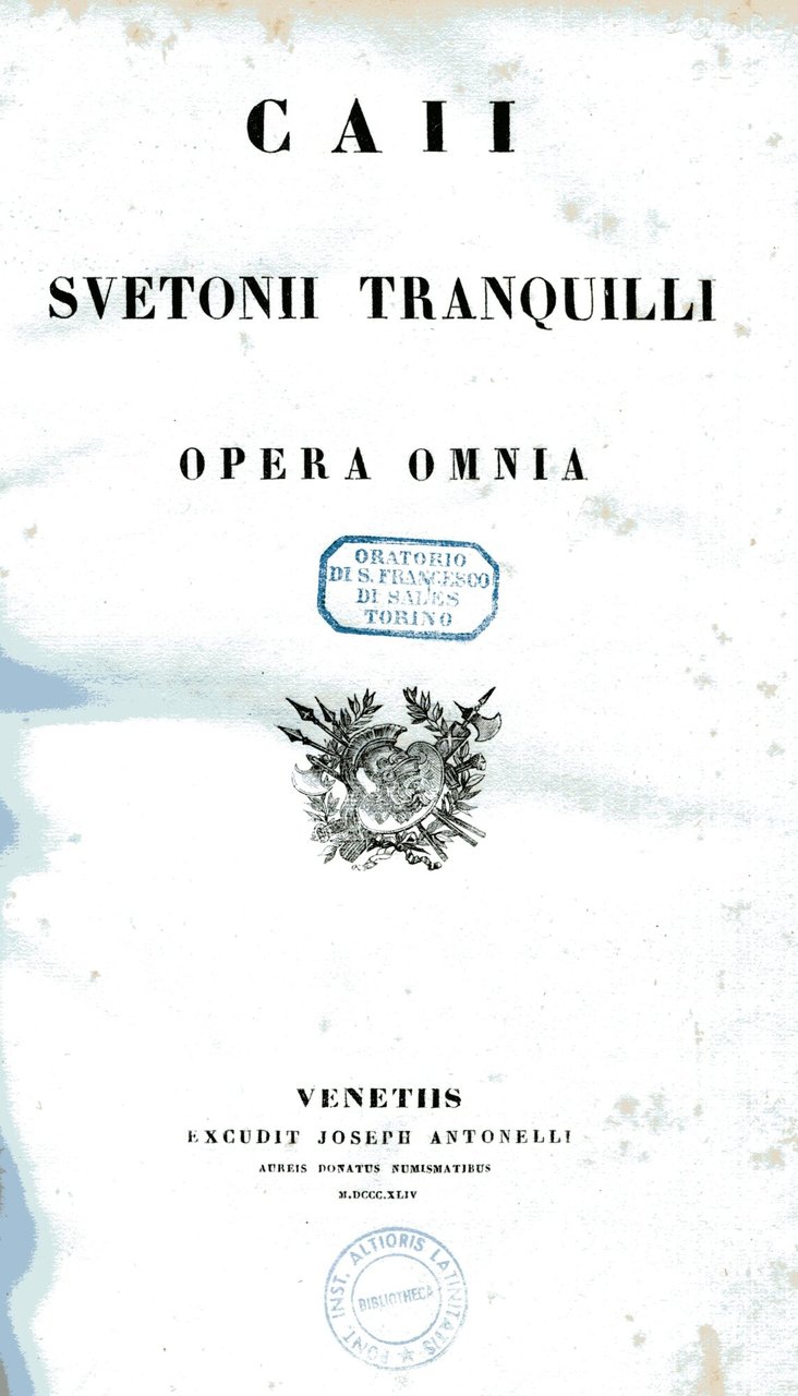 Caii Svetonii Tranquilli Opera omnia. Unito insieme a: Historiae augustae scriptores, Venetiis, Antonelli, 1861