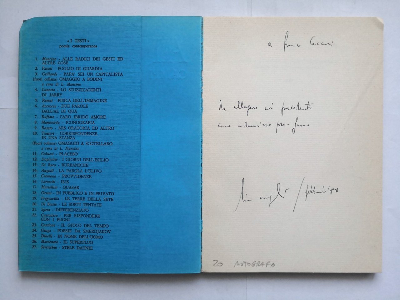 89 pagine. Dedica autografa dell'autore in antiporta. Copertina editoriale in brossura. Stato di conservazione: molto buono (pagine normalmente ingiallite)