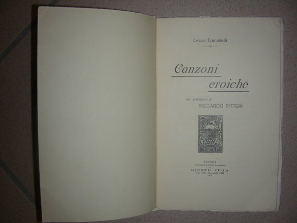 CANZONI EROICHE. Con prefazione di Riccardo Pitteri.