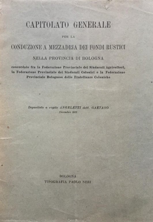 Capitolato generale per la conduzione a mezzadria dei fondi rustici nella provincia di Bologna (1922)