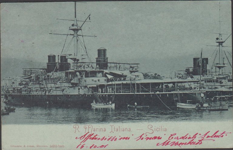 Cartolina R. Marina Italiana Sicilia viaggiata 1901
