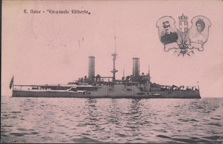 Cartolina R. Nave Emanuele Filiberto viaggiata 1920
