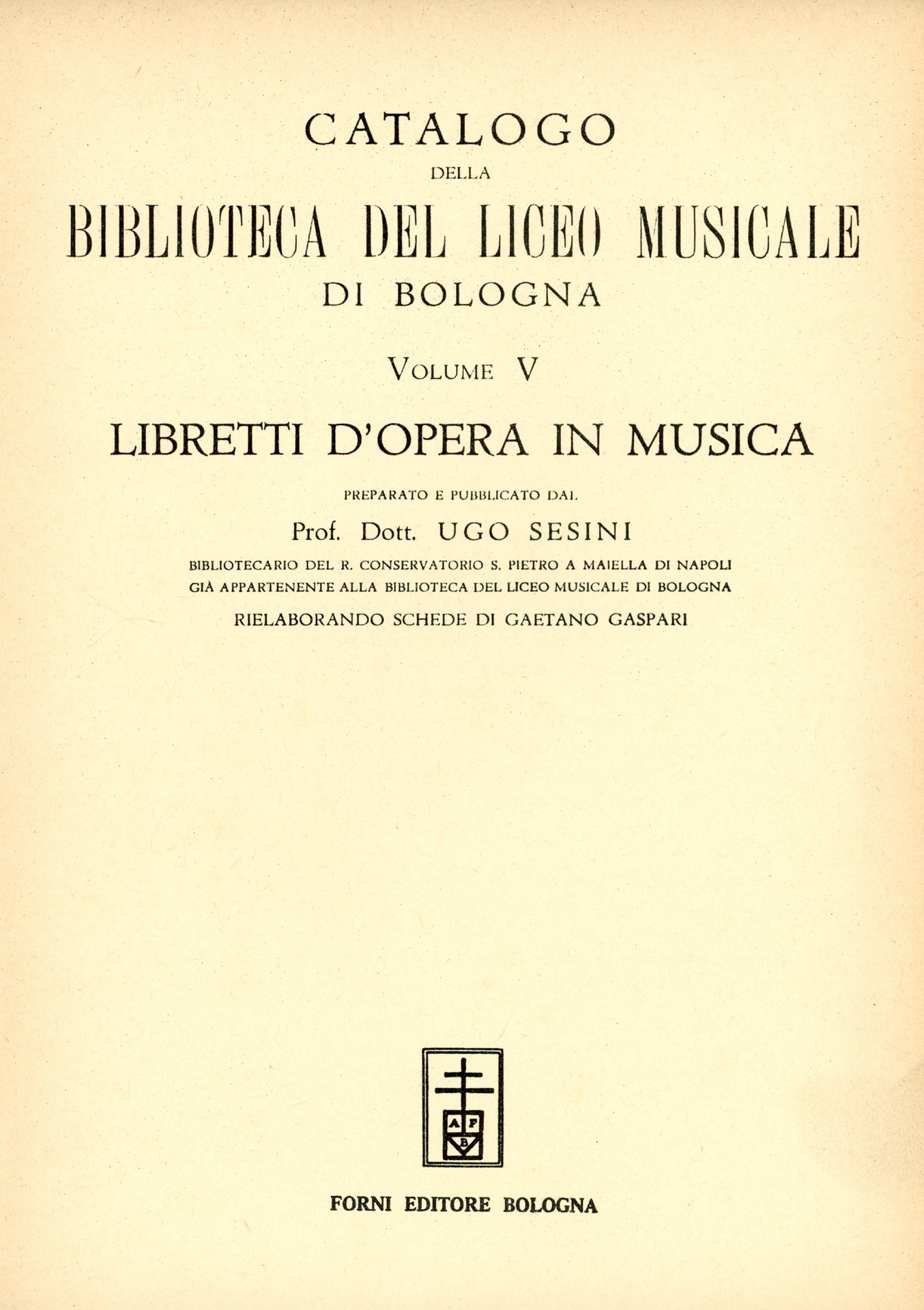 Catalogo della Biblioteca del Liceo Musicale di Bologna. Volume V
