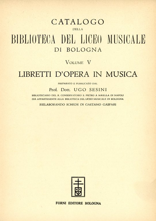Ristampa anastatica dell'edizione di Bologna, 1943. Volume V: Libretti d'opera in musica.. Collana: Bibliotheca Musica Bononiensis. Sezione I, n. 12. 780 LOC � Ba In Quarti ( 24-30cm ) Ottimo (Fine) Ottimo