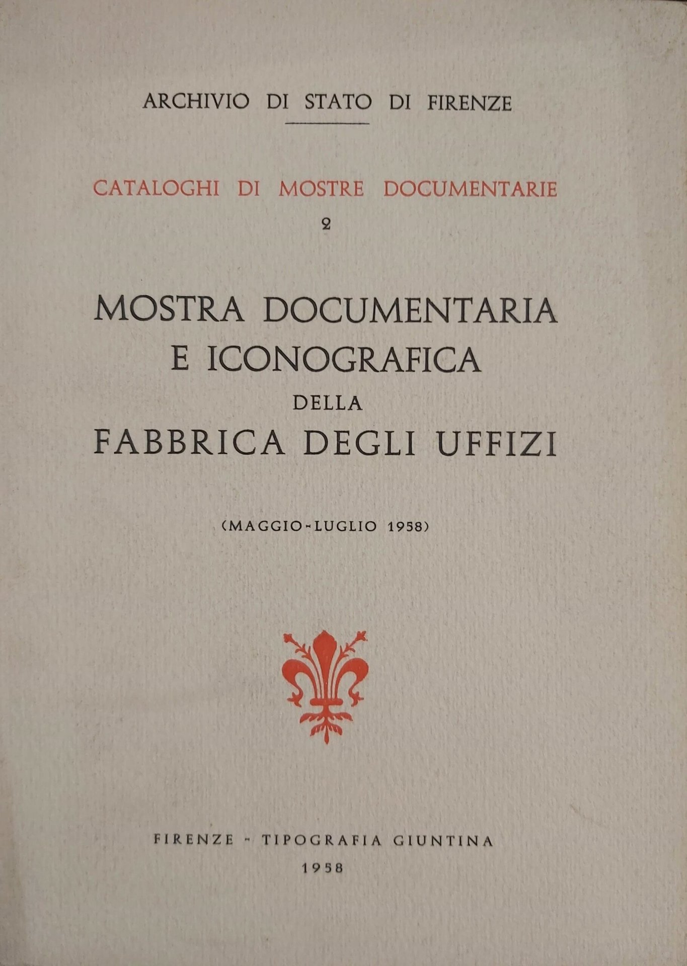 CATALOGO DELLA MOSTRA DOCUMENTARIA e iconografica della fabbrica degli Uffizi (maggio-luglio 1958).
