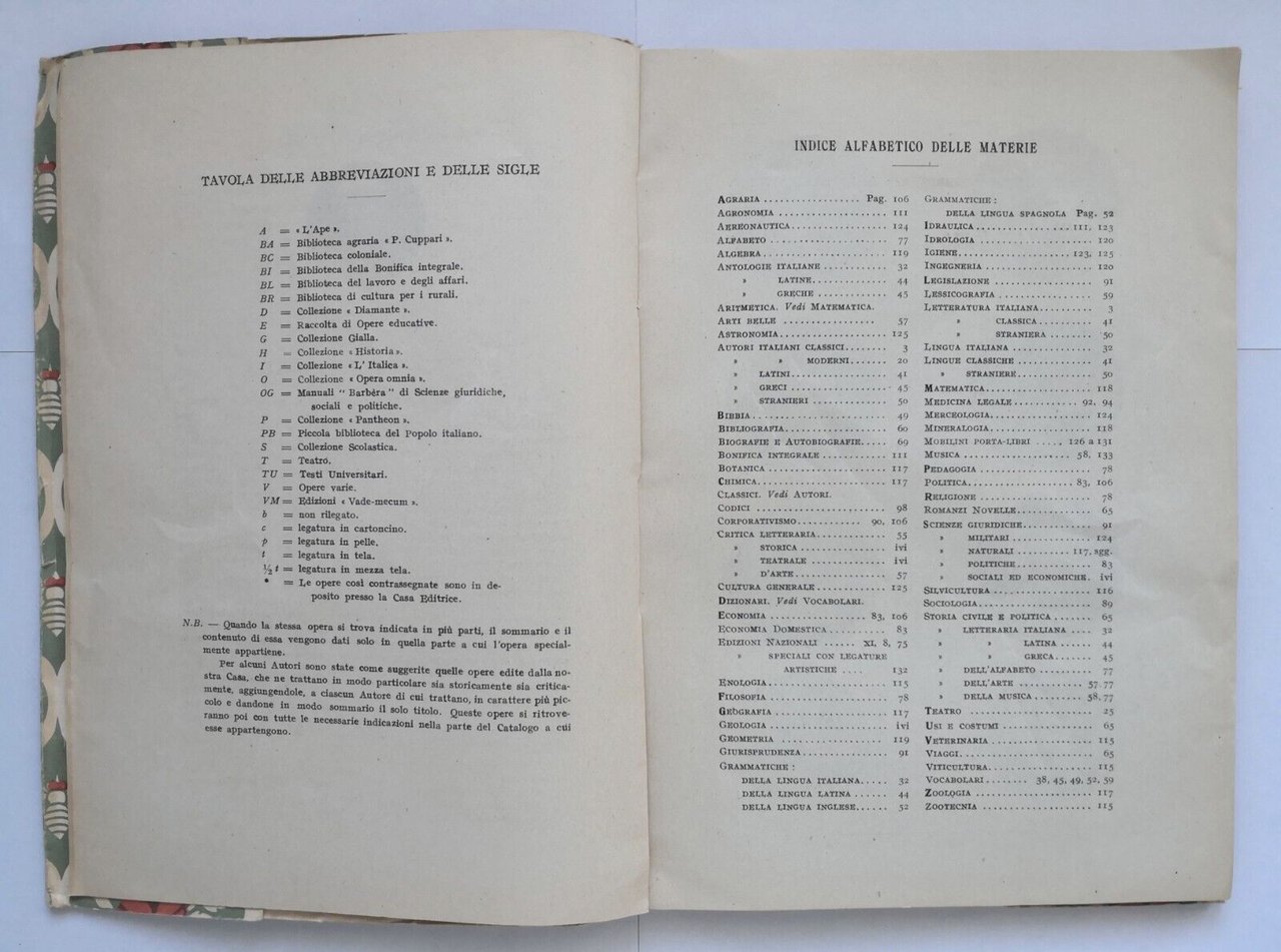 CATALOGO GENERALE dell' editore Barbera 1945 Libro
