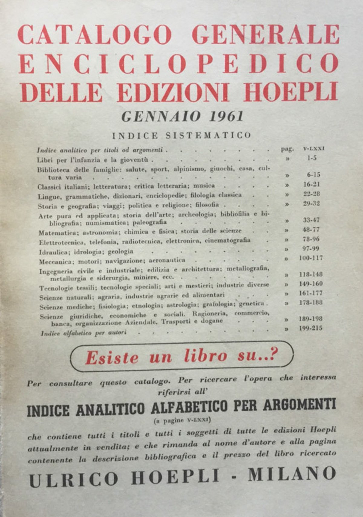 Catalogo generale enciclopedico delle edizioni Hoepli 1961