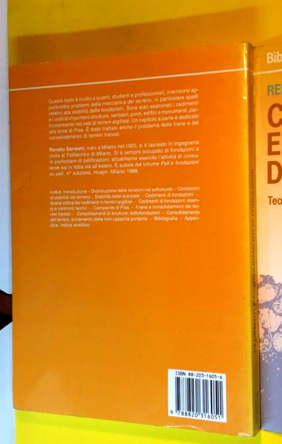 CEDIMENTI E CONSOLIDAMENTI DI FONDAZIONI Renato Sansoni 1989 Hoepli libro teoria