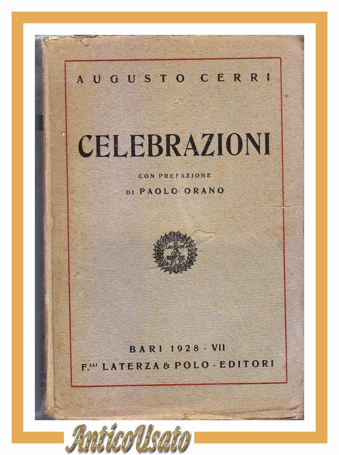 CELEBRAZIONI di Augusto Cerri prefazione Paolo Orano 1928 libro fascismo Bari