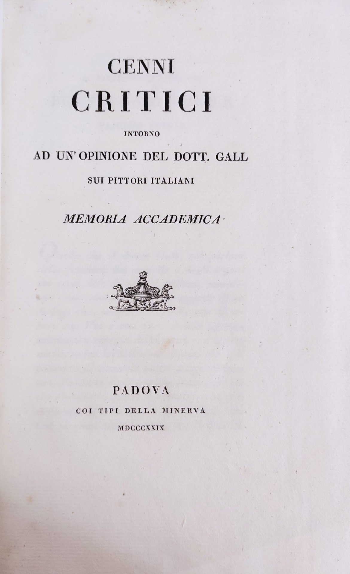 CENNI CRITICI INTORNO AD UN'OPINIONE DEL DOTT. GALL SUI PITTORI ITALIANI