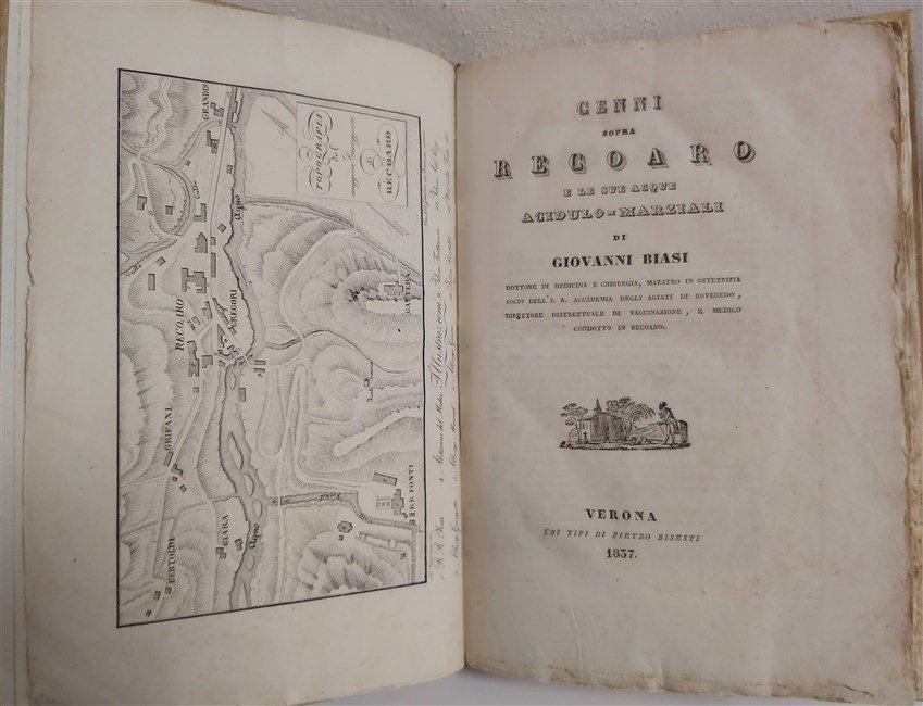 CENNI SOPRA RECOARO e le sue acque acidulo-marziali di… Dottore in Medicina e Chirurgia, Maestro in Ostetricia, Socio dell'Imp. R. Accademia degli Agiati di Roveredo… e Medico condotto in Recoaro.