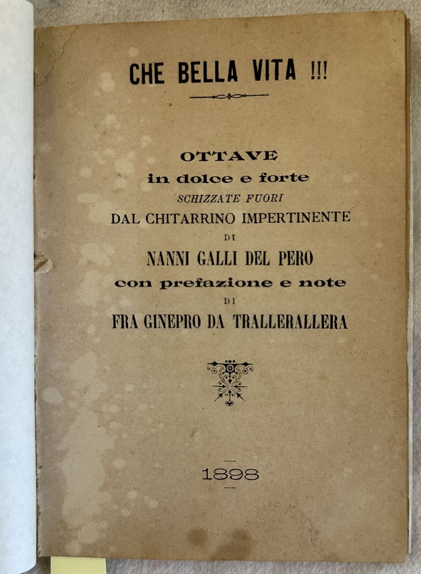 CHE BELLA VITA! OTTAVE IN DOLCE E FORTE SCHIZZATE FUORI DAL CHITARRINO IMPERTINENTE <BR><BR> | Livres anciens et modernes | Nanni Galli Del Pero