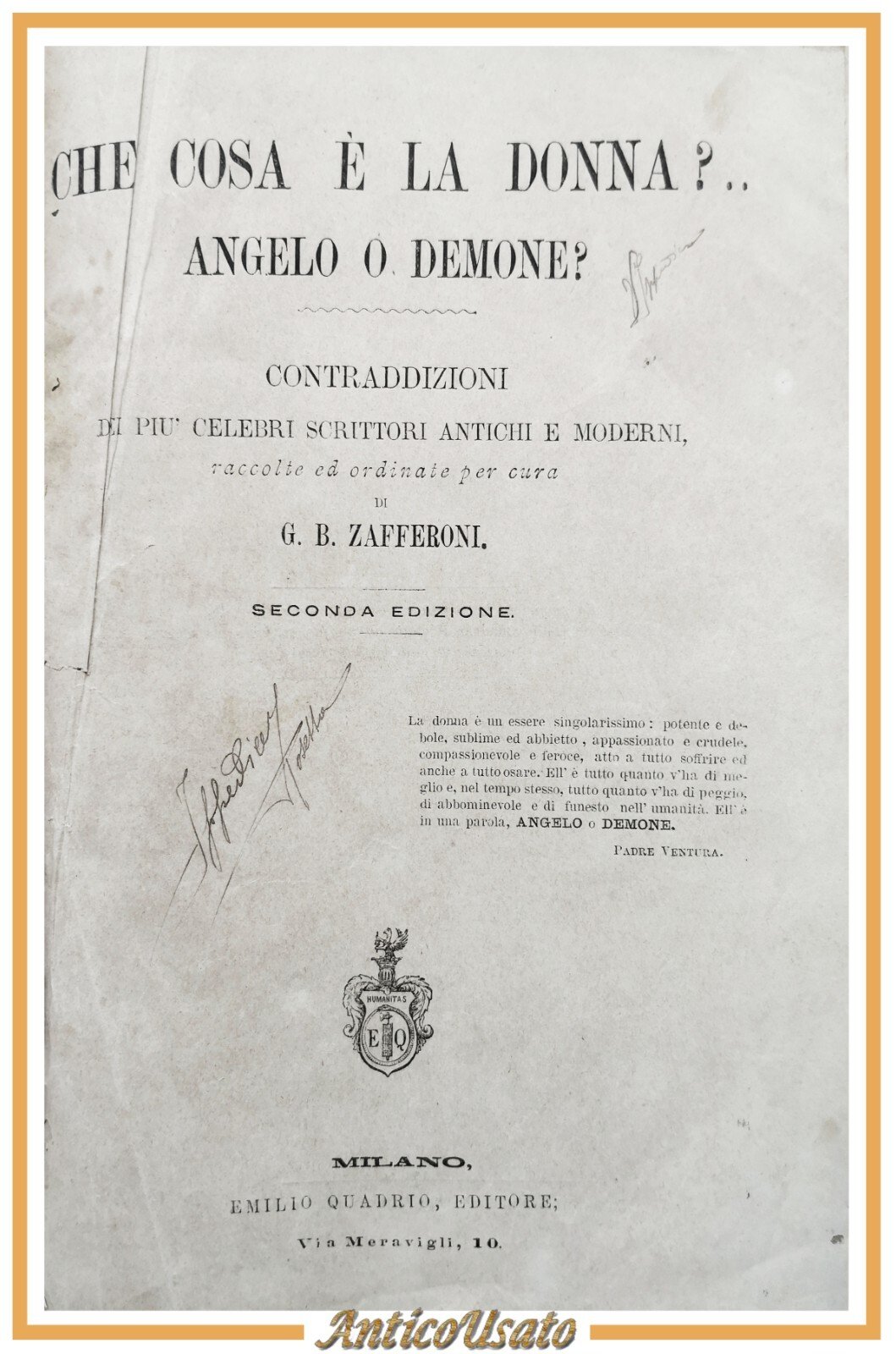 CHE COSA È LA DONNA ANGELO O DEMONE a cura di Zafferoni 1882 Quadrio Libro antic
