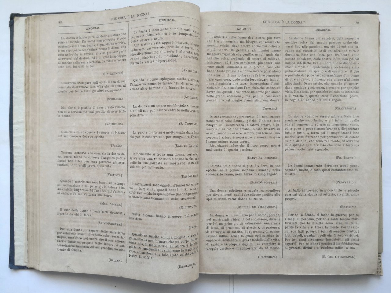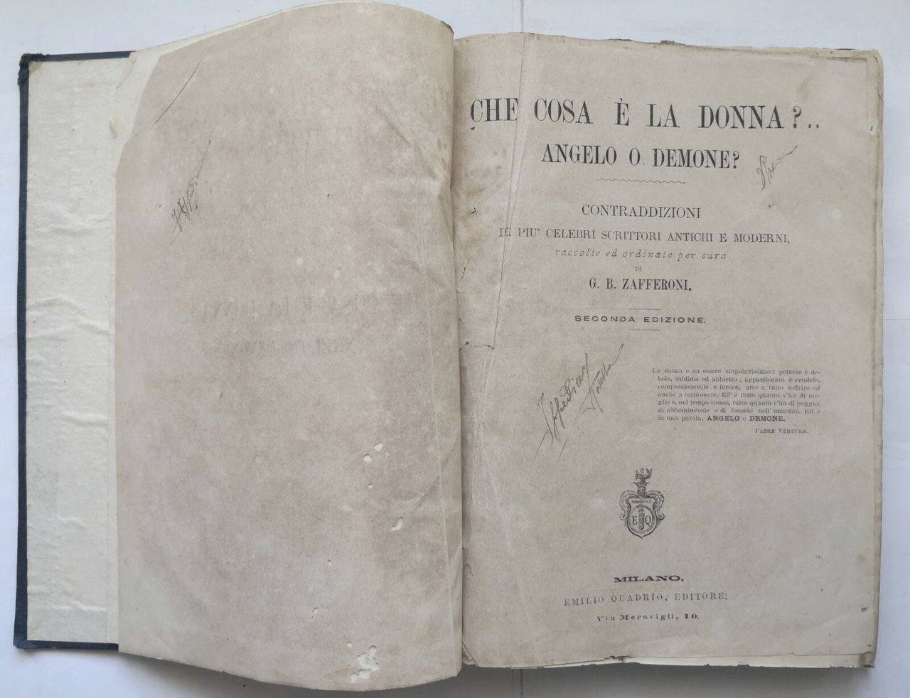 CHE COSA È LA DONNA?... ANGELO O DEMONE? Contraddizioni dei più celebri scrittori antichi e moderni raccolte ed ordinate per cura di G.B. Zafferoni.