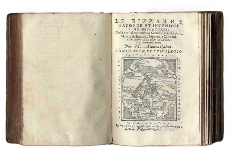 Fra le più complete raccolte di opere di Andrea Calmo, il volume contiene infatti ben sette edizioni. Esemplare genuino, occasionali fioriture e bruniture, aloni di umidità a inizio e fine volume. Rasi, I comici italiani, Firenze 1897, I pp. 549-553. Sanesi, La commedia, Milano, 1911, I pp. 422-426.
