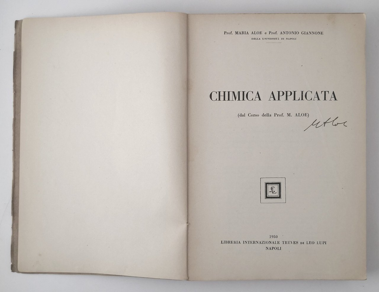 CHIMICA APPLICATA di Aloe e Giannone 1950 Libreria Internazionale Treves Libro