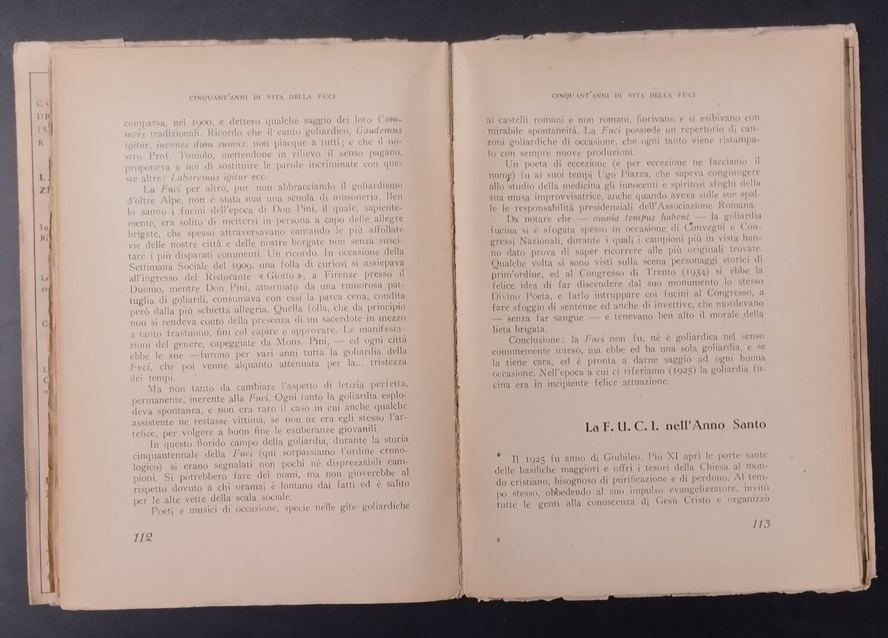 CINQUANT'ANNI DI VITA DELLA FUCI di Guido Anichini 1947 Studium Libro f.u.c.i.