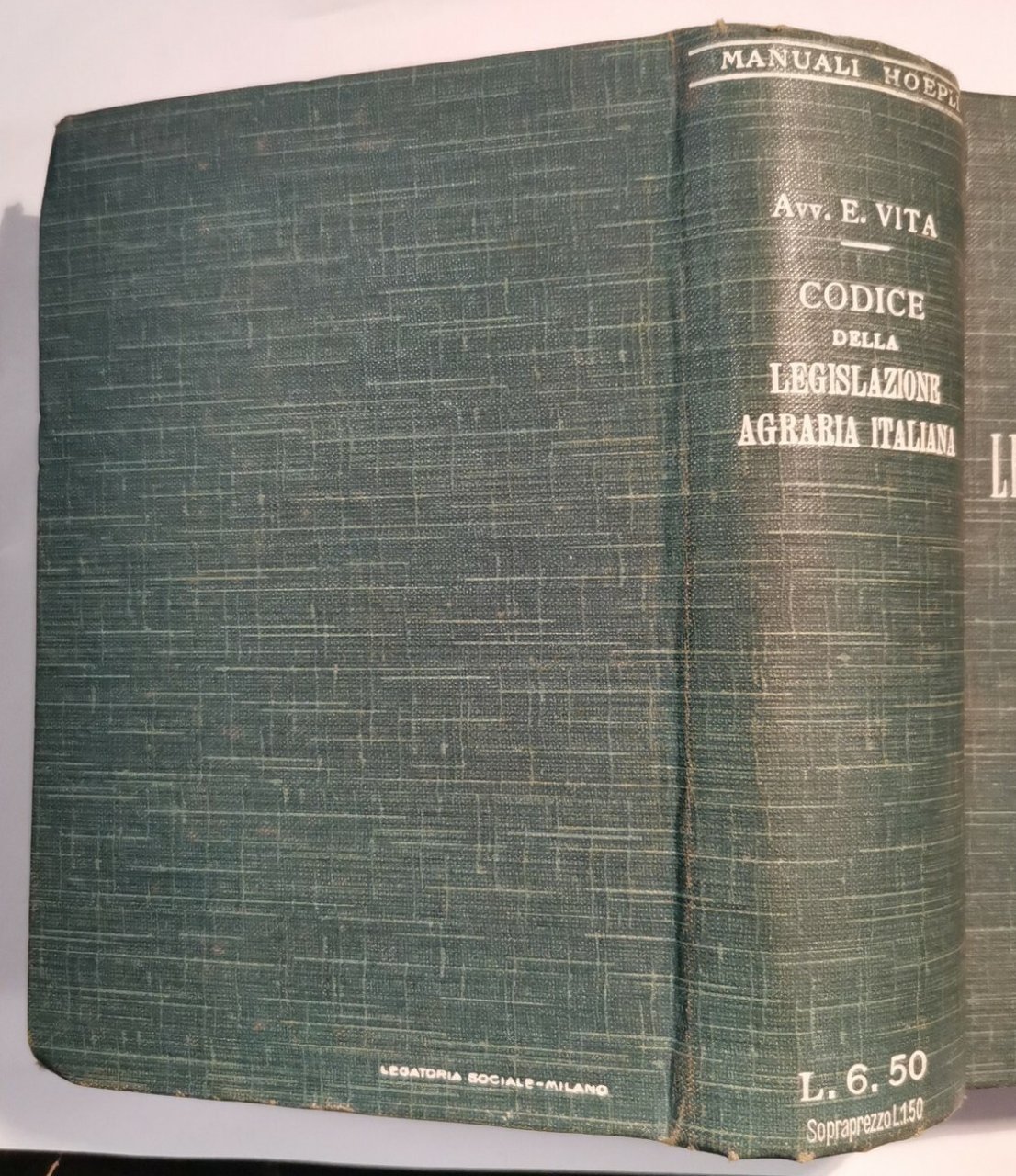 CODICE DELLA LEGISLAZIONE AGRARIA ITALIANA Diritto privato e pubblico di E. Vita.